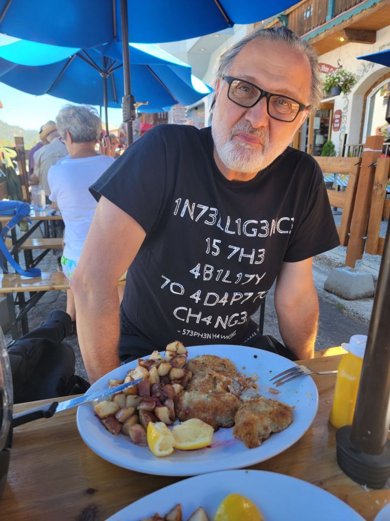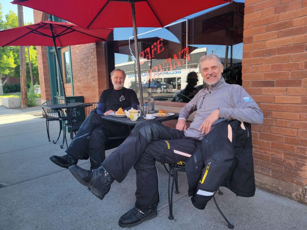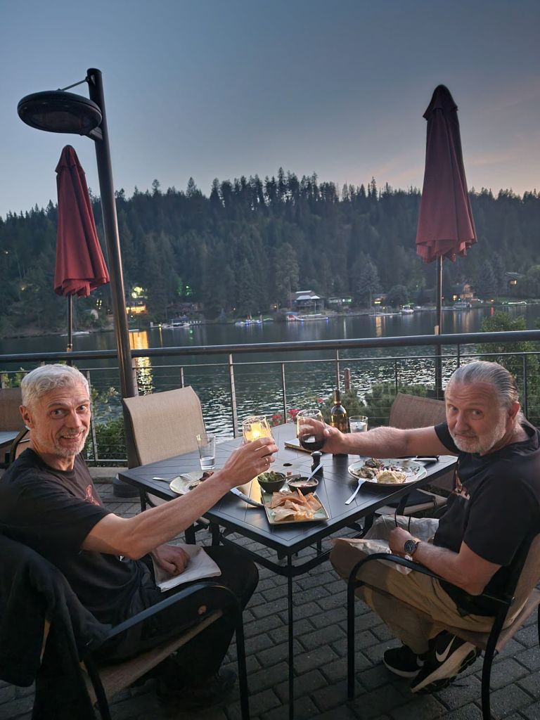 A couple of hours of riding through this crazy landscape took us to Spokane, and soon after that, to Coeur D’Alene in Idaho, our destination for the day. After dropping off our luggage at the hotel we went to a local restaurant where we had an excellent dinner including some really good wine. A couple of restaurant stuff complemented the wine we selected, which led us to share some of it with them. They were very grateful.