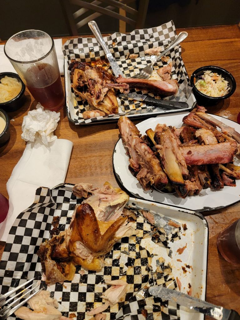 We ordered an unreasonable amount of food. Each of us had a rack of ribs and half a chicken plus a few oder things.