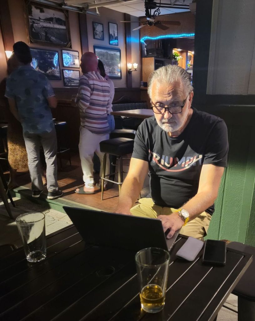 It just happened to be a karaoke bar. The torture of listening to a few people’s interpretation of B 52s Love Shack, Whitney Huston, and Bohemian Rhapsody (Qeen) could be ony be compared to having dental work without any anesthetic. But somehow, it didn’t distract Sasa from being busy on his laptop. What a hard-working man.